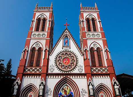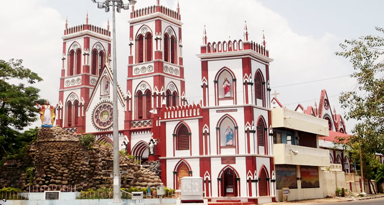 The Basilica of the Sacred Heart of Jesus is a famous church located in Pondicherry, India. This architectural wonder was built in the 1900s and is known for its neo-gothic style. The church features stained-glass windows and beautiful murals, making it a popular tourist attraction for those visiting Pondicherry.